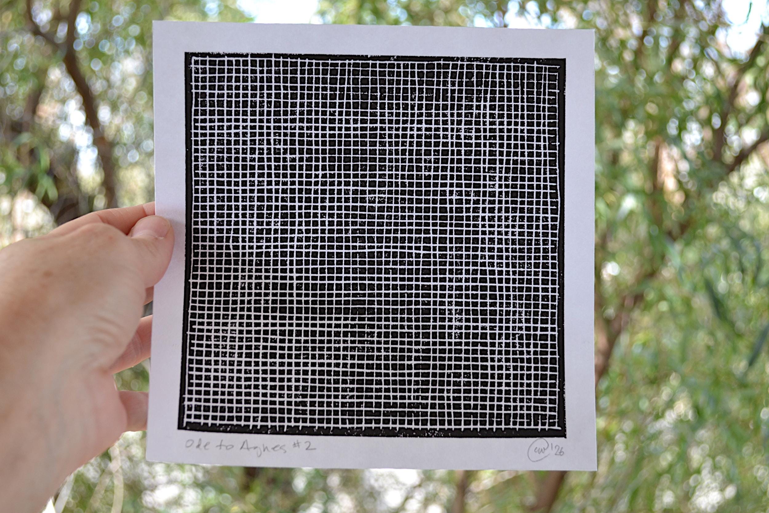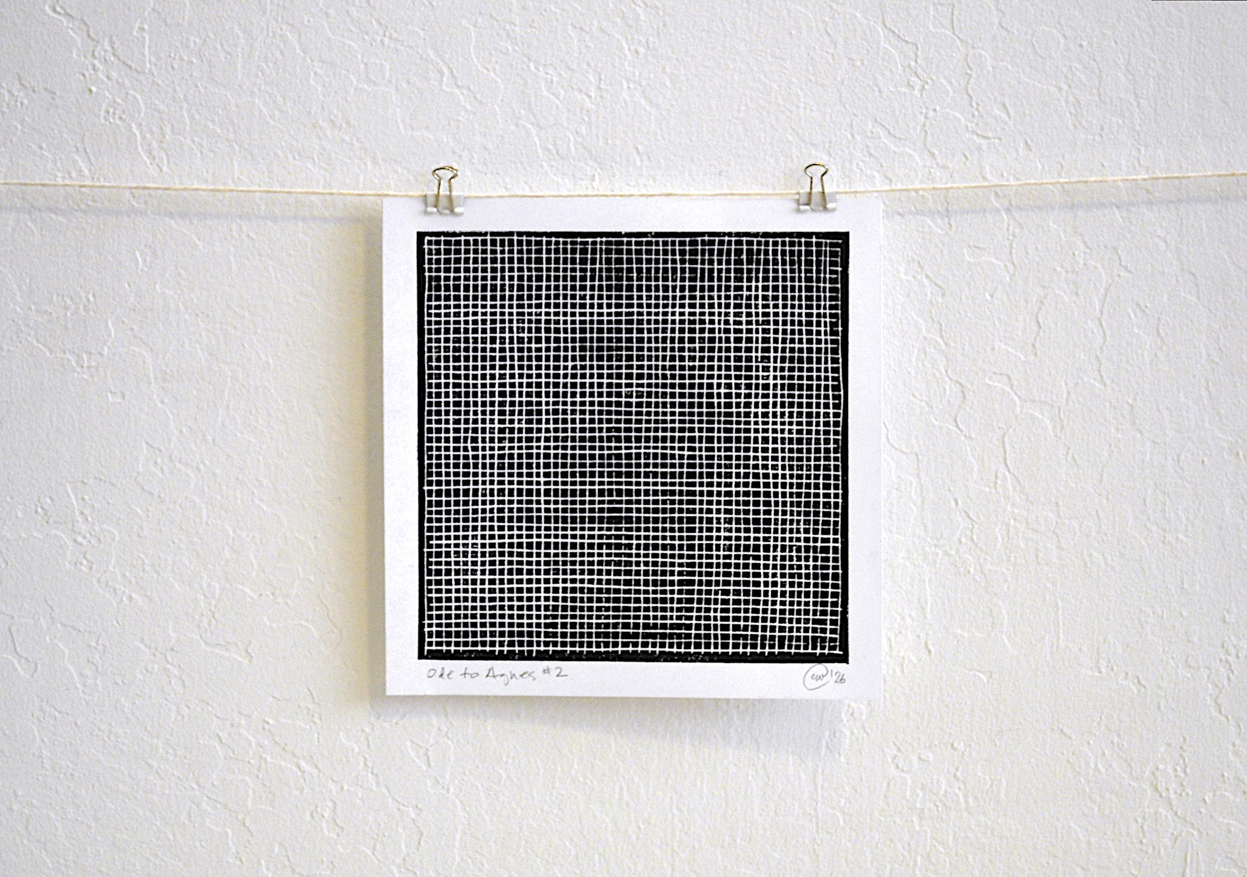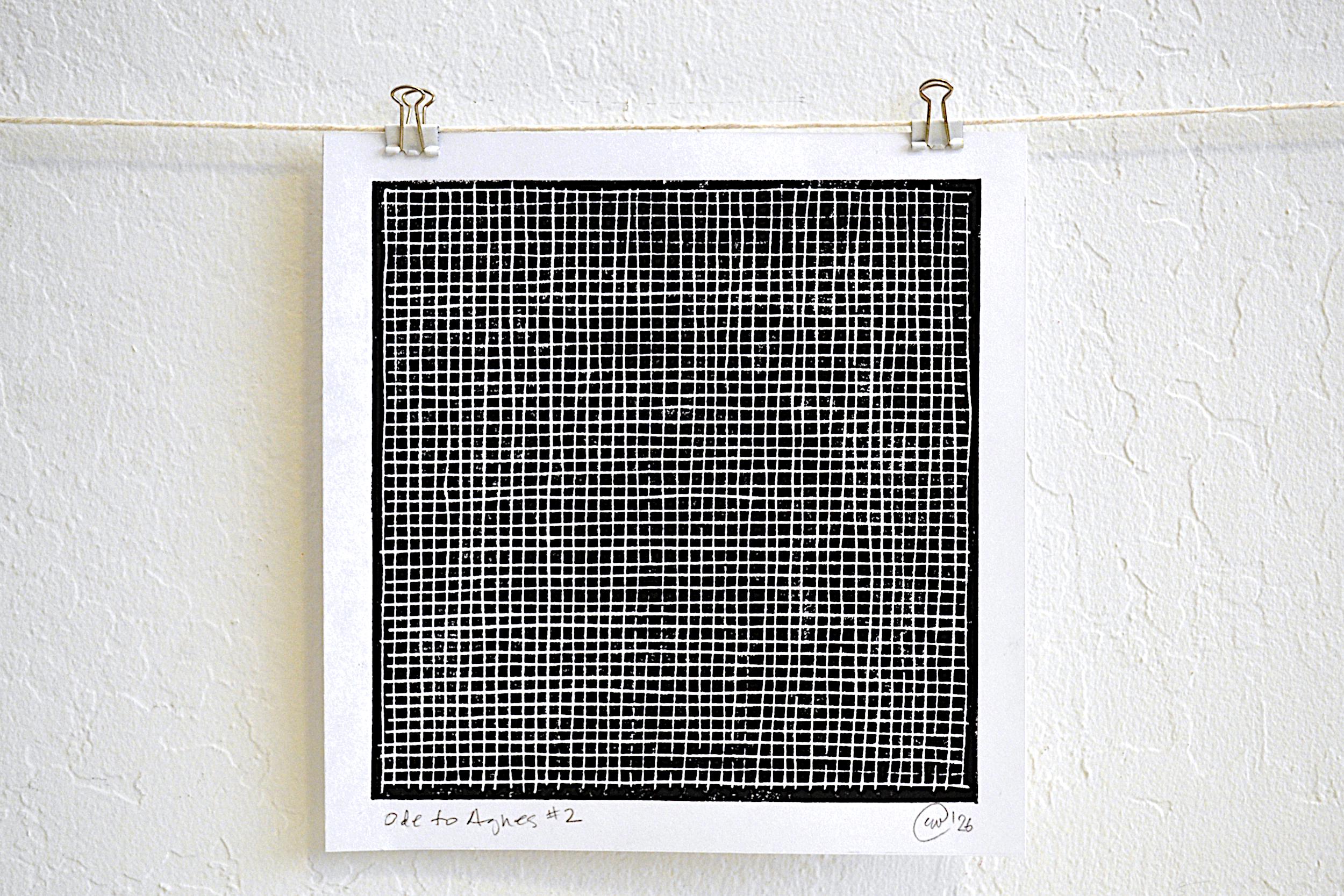 For this linocut print, I was inspired by the quiet, very contemplative artist, Agnes Martin. I can't even come close to her meditative, patient style, but I enjoy the process. Thank you, Ms. Martin, for the inspiration.